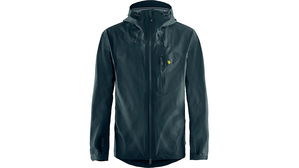 Light, waterproof three-layer jacket for mountain activities where you want to be able to move quickly with a light pack.Engineered Bergtagen fit and a minimalistic, clean design.Stretchy, breathable Eco-Shell fabric protects from rain and wind, plus itsLight and easy to compress into a backpack.The hood has room for a helmet and can be adjusted to follow head movements well.Theres a two-way water-resistant front zipper with an inside placket.Zippered side ventilation openings let out excess moisture on intense climbs andpositioned so you can reach the pockets on a layer worn underneath.Zippered chest pocket and a RECCO rescue reflector.Fabric made from 100% recycled polyester with PFC-free impregnation.![]()