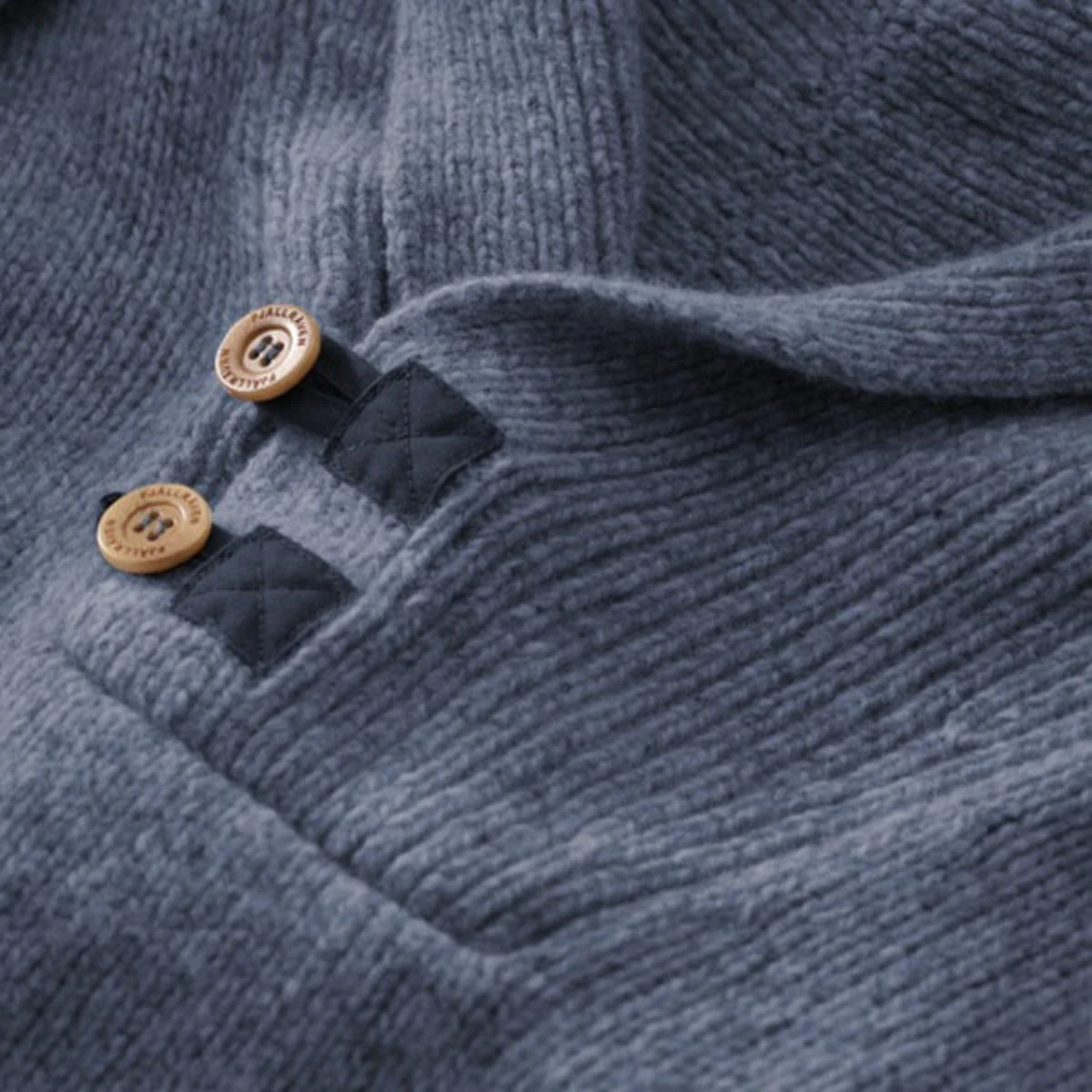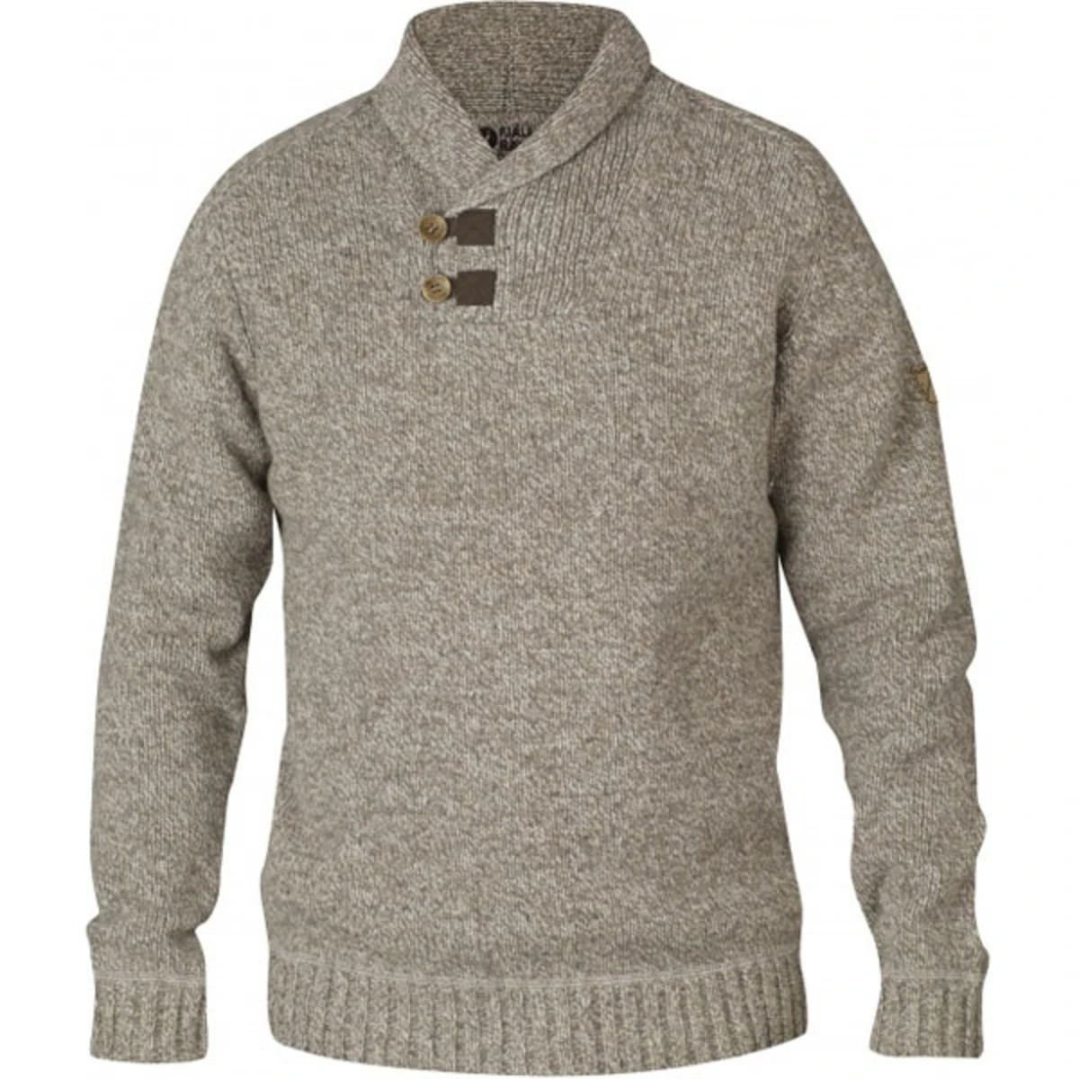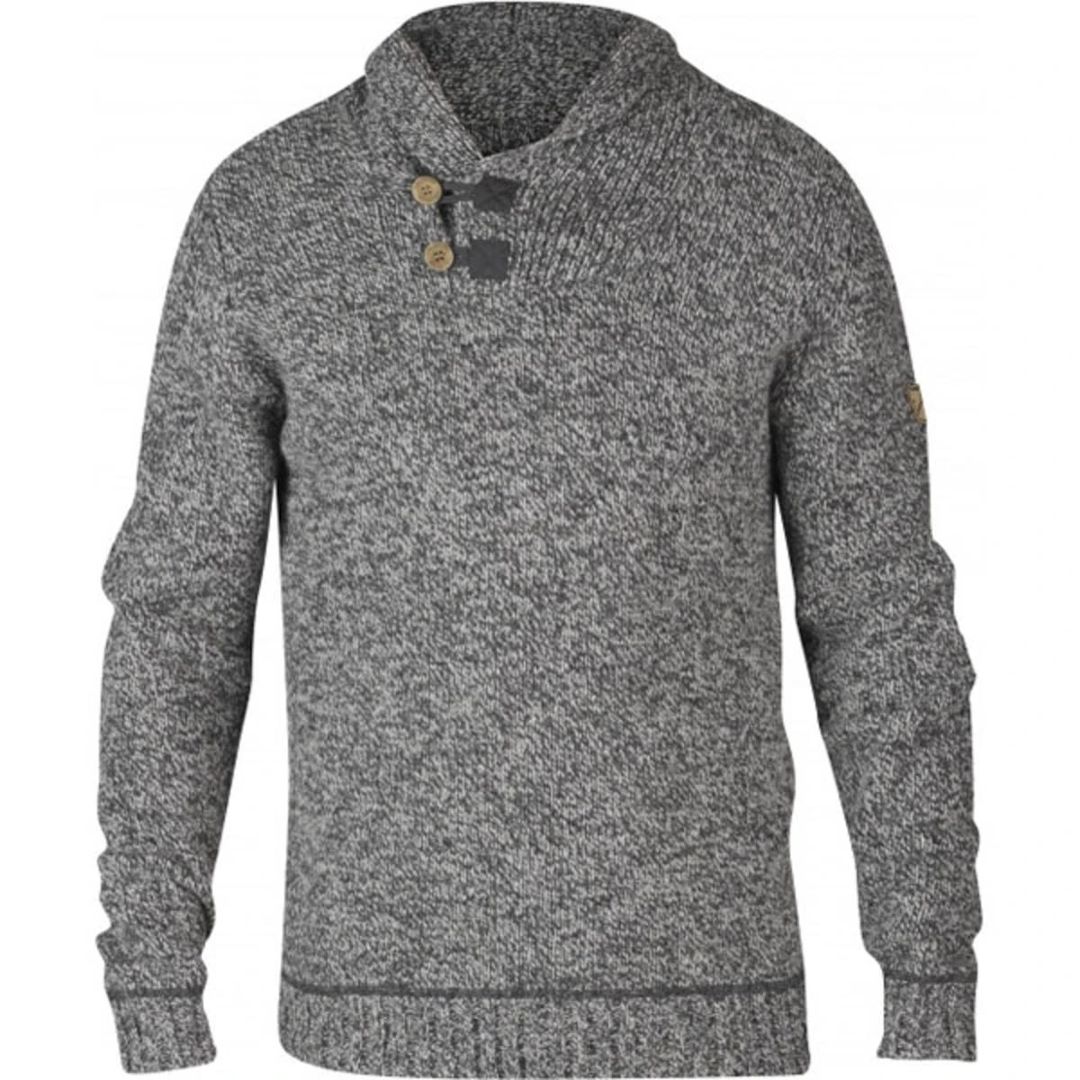 Knitted sweater in lambswool blend with classic shawl collar and slightly marbled yarn. Perfect for everyday use over a shirt or as a warm middle layer on an autumn/winter walk. Corozo buttons and eyelets in G-1000 Original. Ribbed sleeve cuffs and hem. Leather logo on the sleeve. Regular fit.