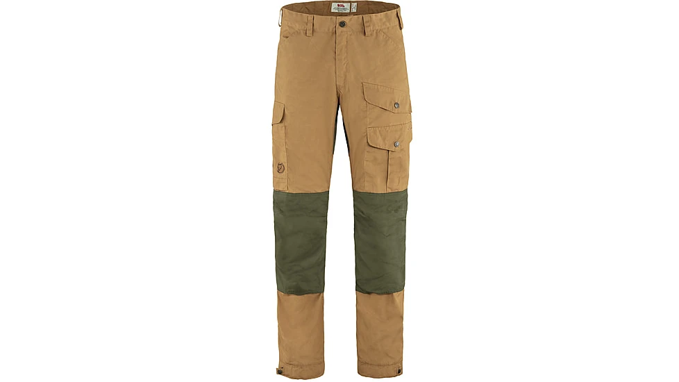Durable trekking trousers for adventures in the mountains and forest. Made from durable wind and water-resistant G-1000 Original fabric with double layers over the rear and knees. Regular waist (mid waist) and regular fit with pre-shaped knees. Six practical pockets including a map pocket and an axe pocket. Elastic strap adjustment with press buttons on leg endings. NOTE: this model has regular leg length. Also available in a 2″/5cm longer version (art.no. 81760) and shorter version with 30″/76cm inseam length for all sizes (art.no. 86225).![]()