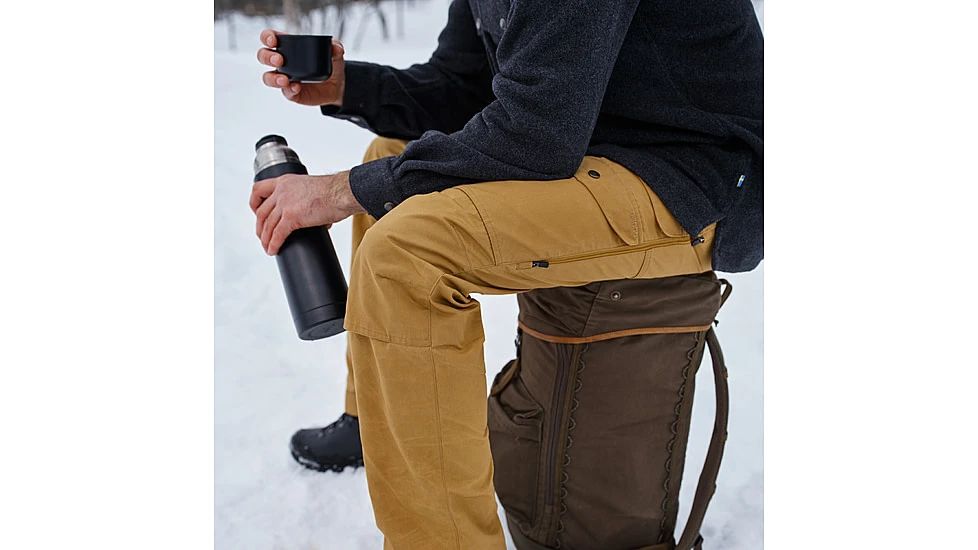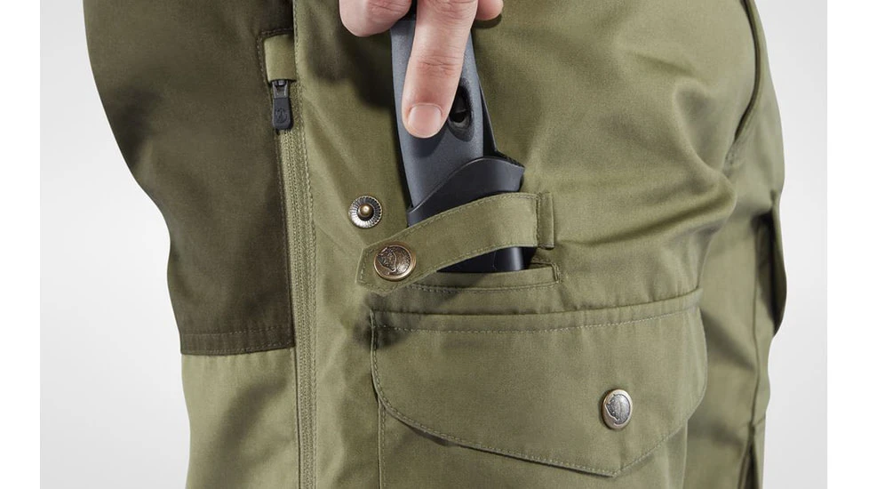 Durable trekking trousers with technical features, made from wind and water resistant G-1000 Eco. The model is based on our best-selling Vidda Pro but has improved ventilation options and a new, slightly slimmer fit that still has great freedom of movement. The buttoned strap adjustments at the leg endings can be removed and there are numerous practical pockets and details – such as a knife pocket on the right-hand leg and a loop for an axe on the side of the waist. NOTE: this model has a longer leg length (2″/5cm longer than regular length). Also available in regular leg length (artn. no 81160R) and with 30″/76cm inseam length for all sizes (art.no. 86224).![]()