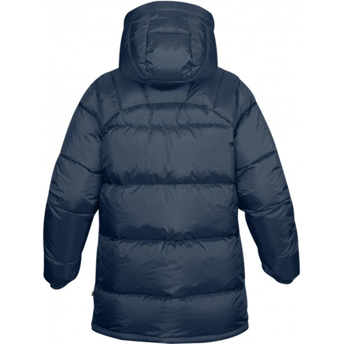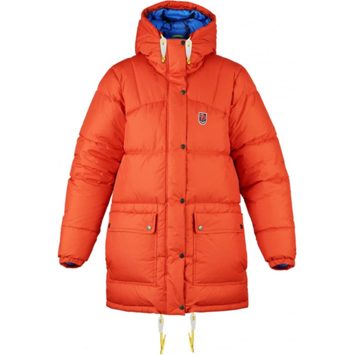 Long, well-insulated down jacket for really cold winter climates. A beloved Fjallraven classic from 1974, here with an updated fit for women. Warm hood and generous pockets with extra openings that let you put your hands in from the sides.