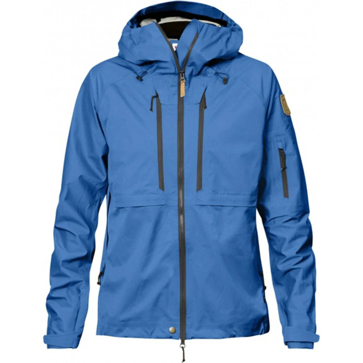 Pliant technical jacket for demanding adventures in changeable weather conditions all year round. Made from stretchy Eco-Shell for high performance and low environmental impact. The material is hardwearing at the same time as it naturally follows the movements of the body and ventilates out moisture that builds up inside when you are active. A perfect choice for trekking and ski touring, where the jacketx92s minimalistic design facilitates the push forward at the same time as you have reliable protection even in really bad weather. The cut is carefully worked through for a perfect fit and freedom of movement. The well-fitting hood has room for a helmet and can be adjusted for good protection without limiting vision or movement of the head. The jacket opening has a two-way waterproof zipper with an inside protective flap, which is easy to open at both ends for ventilation. The spacious chest pockets with hidden bellows are accessible even when you are wearing a climbing harness or backpack with hipbelt, and they have elastic mesh inner pockets that keep a mobile phone and other small items in place. Two-way zippers at the sides release excess heat. The hem can be adjusted with a drawcord and the sleeve cuffs with Velcro. Eco-Shell is a waterproof, breathable and sustainable hardshell fabric that is treated with fluorocarbon-free impregnation. Eco-Shell is made from recyclable polyester (both recycled and new), and all emissions during production and transport are climate compensated.