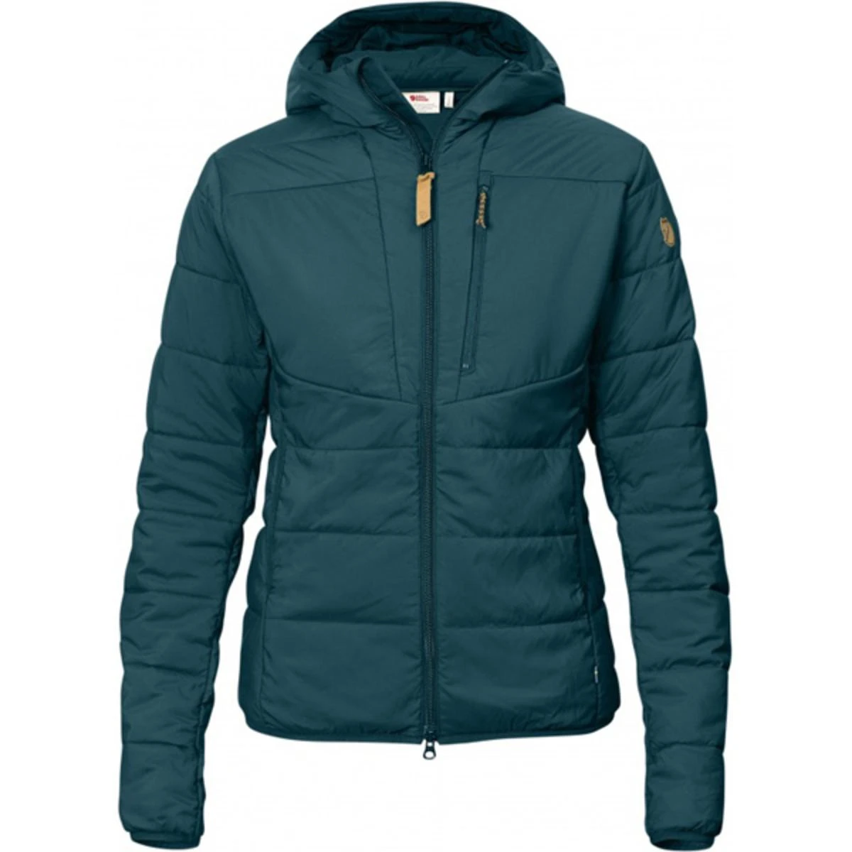 Lightweight and pliant reinforcement jacket with a fixed hood x96 the perfect insulation garment that slides easily under or over a shell jacket and that takes up almost no room in your pack when it is not being used. Made from stretchy polyester and padded with the new synthetic G-Loft Supreme that feels like down and has an exceptionally high insulating ability, even in wet conditions. The hood is well fitting and has a one-hand adjustment at the back. There are two open hand pockets and a zippered chest pocket on the left-hand side. On the right-hand side there is an open inside pocket in mesh. The front zipper is two way and there is elastic edging at the cuffs and hem.